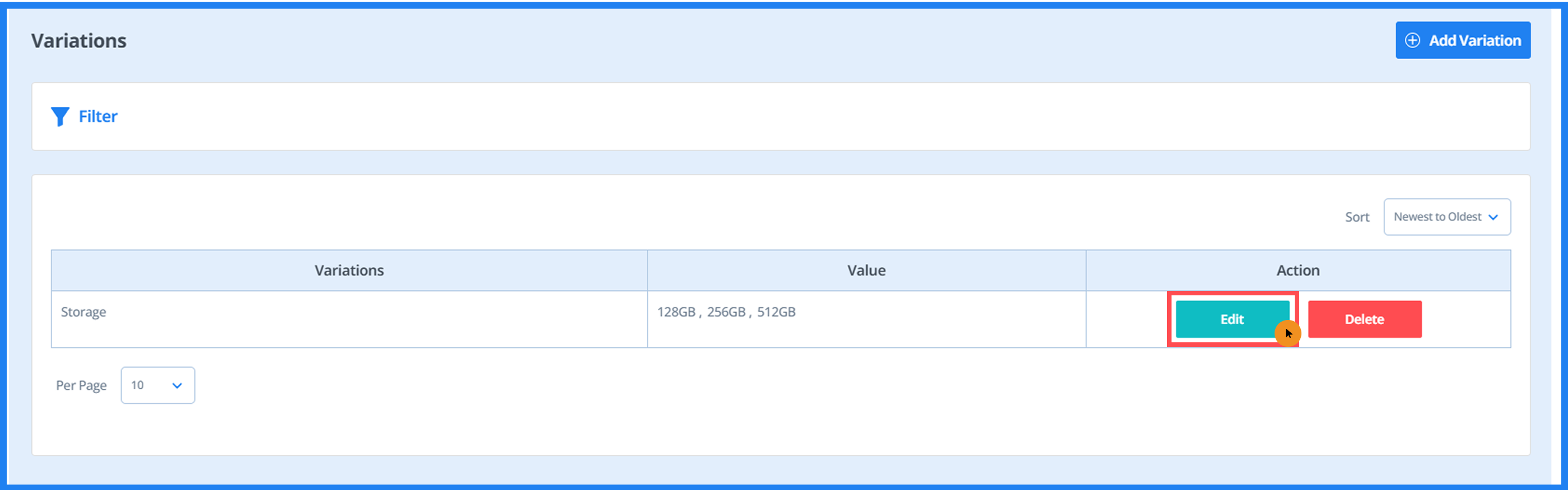 - Here, you can view variation names, and also add, edit, or delete them.