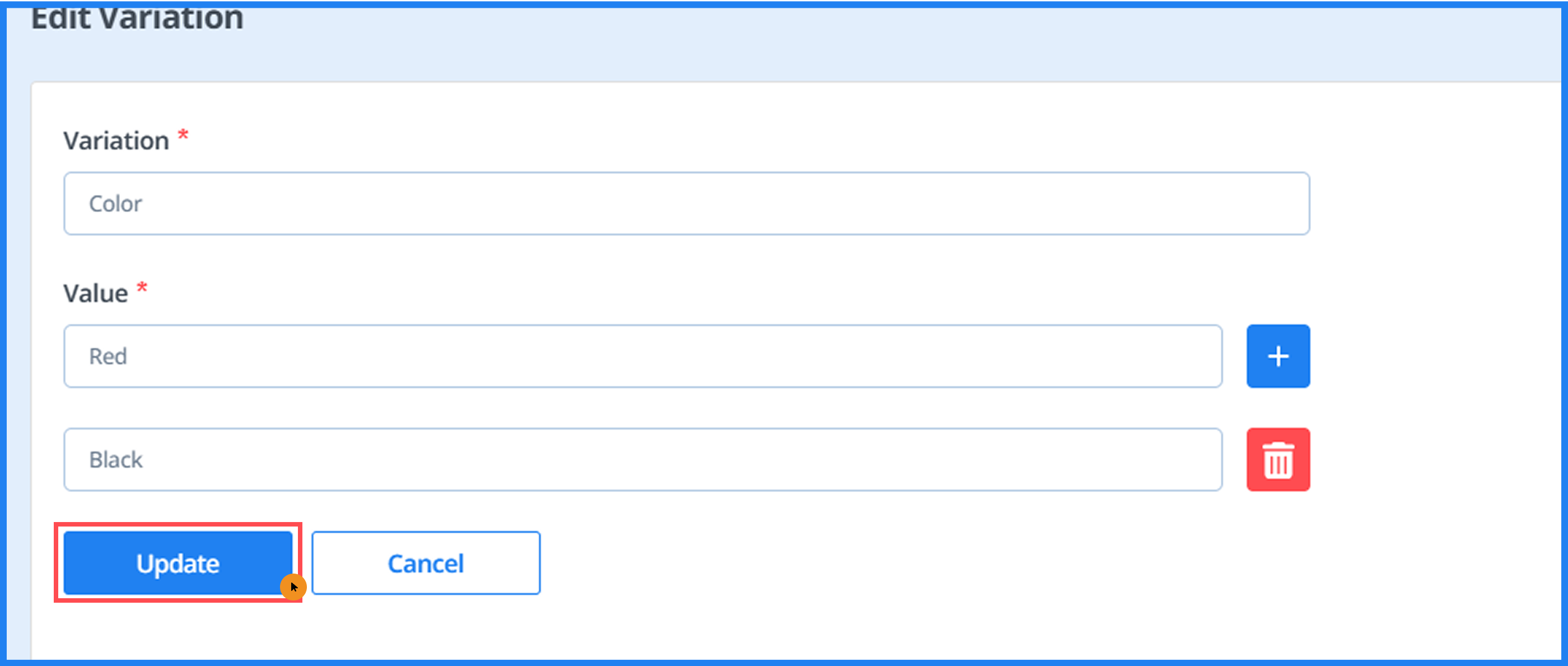 - To edit a variation, click the 'Update' button.