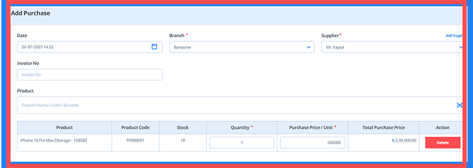 - First, select a branch; otherwise, the product field will remain inactive. You can select multiple branches here.