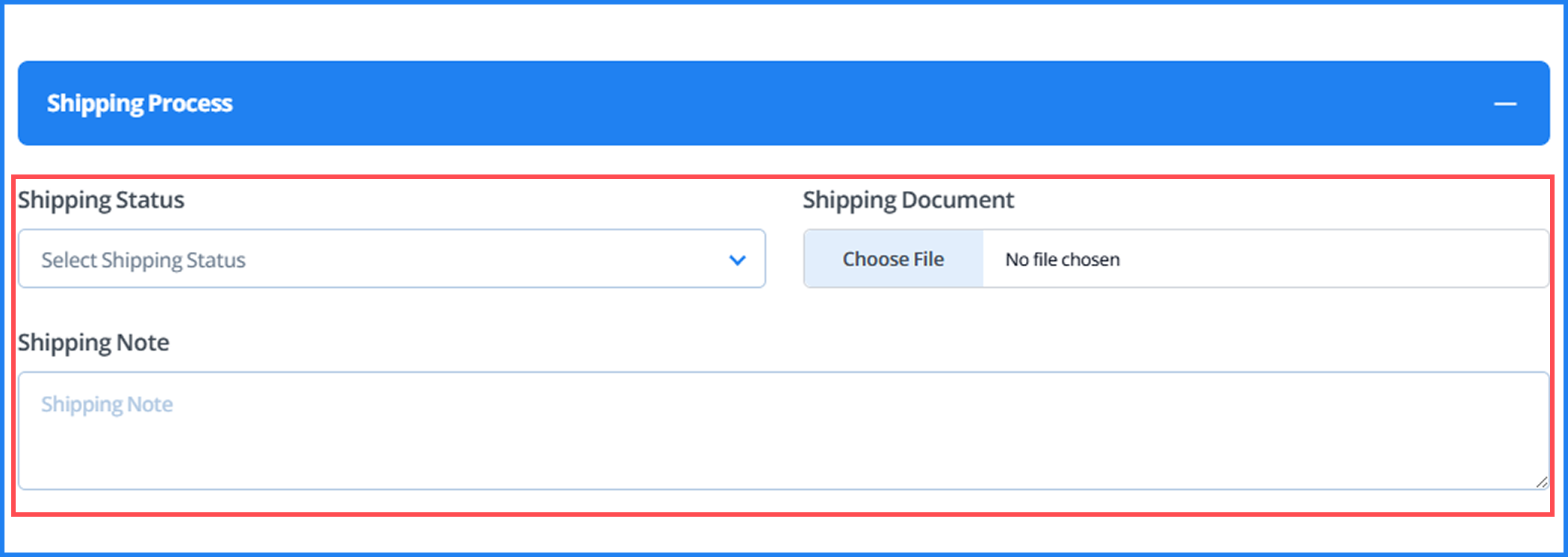 - If you need to update the shipping process, simply click this section to expand it.