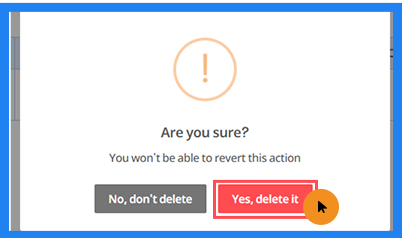 - To confirm deletion, click the 'Yes, delete it' button. To cancel, click the 'No, don’t delete' button or click anywhere outside the confirmation dialog.