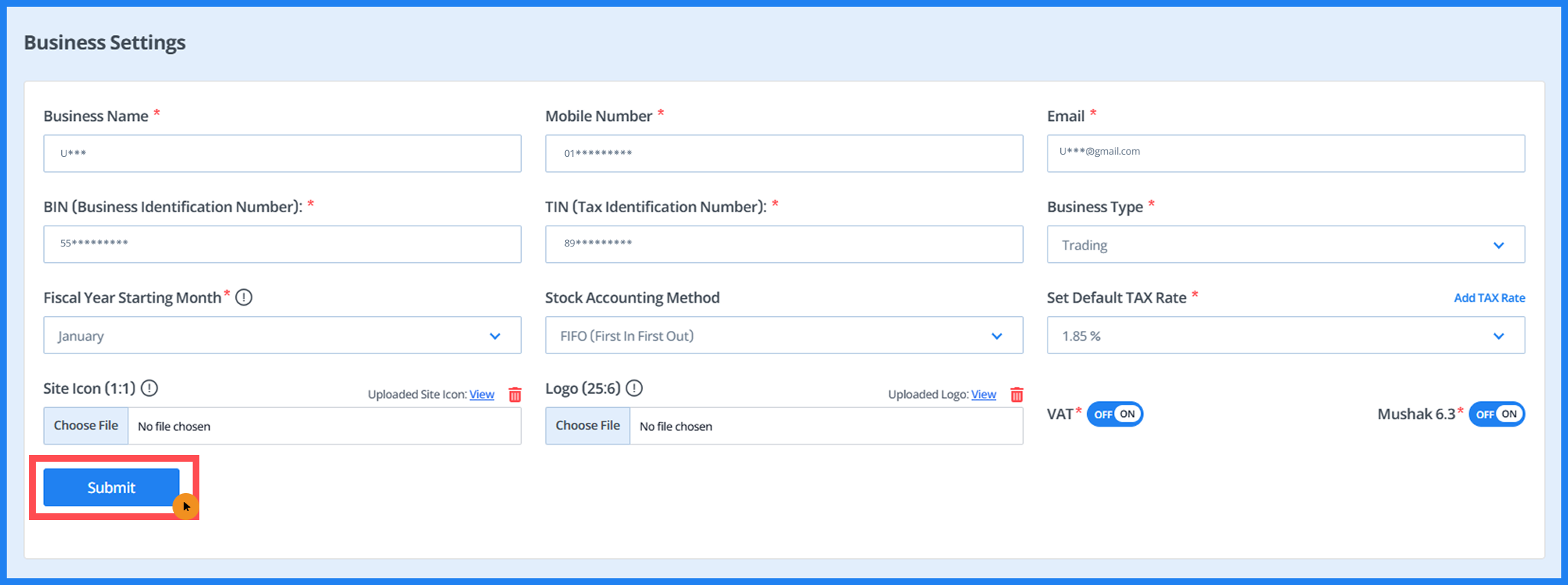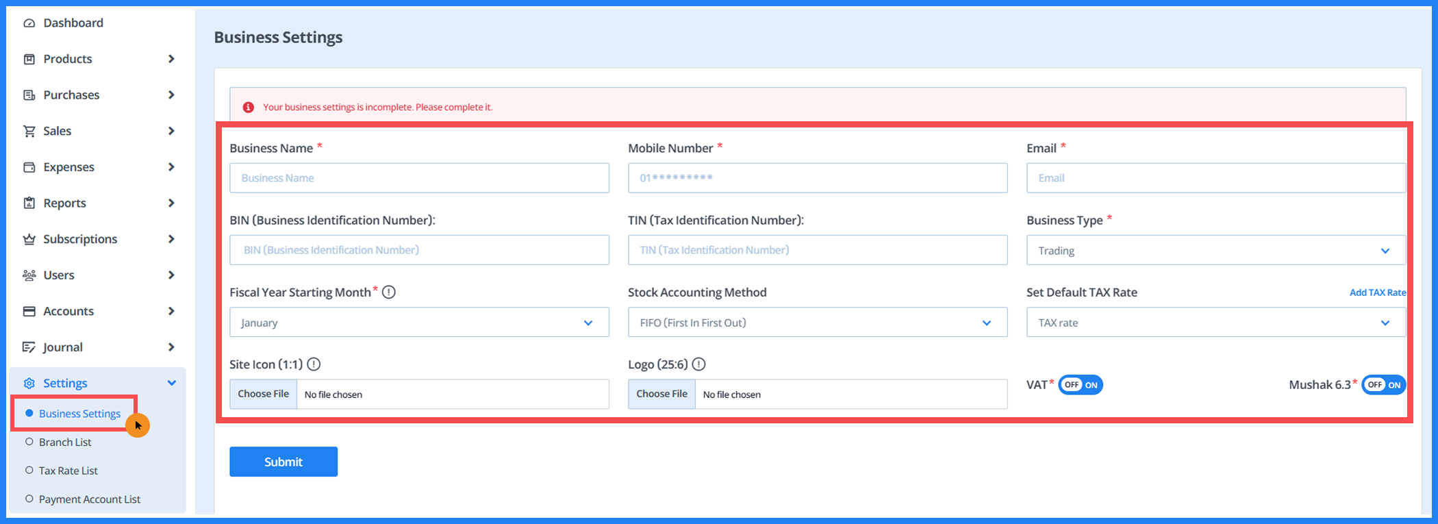 - If you have BIN and TIN, enter them in Business Settings. They will appear automatically on invoices, challans, and reports.
