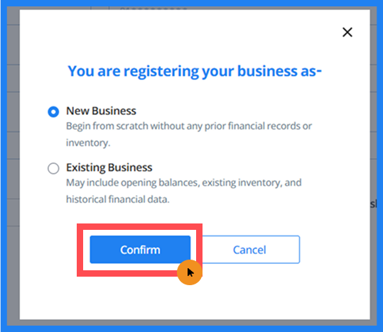 - After completing all the required fields to set up your business account, click the Submit button. You will then see a modal where you must select either 'New Business' or 'Existing Business,' and then click the Confirm button.