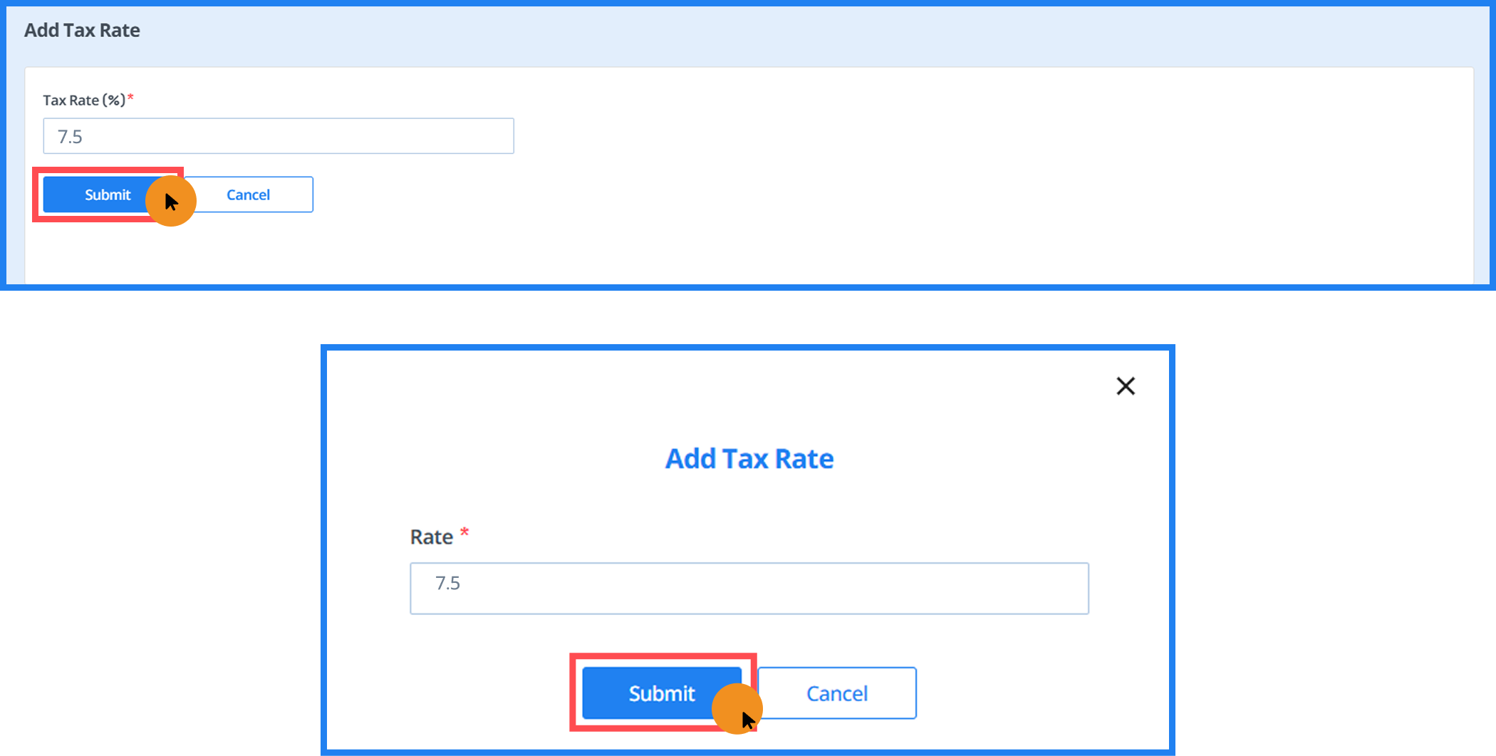 - To add a tax rate, you can go to the Business Settings page and click on the 'Add Tax Rate' option also.