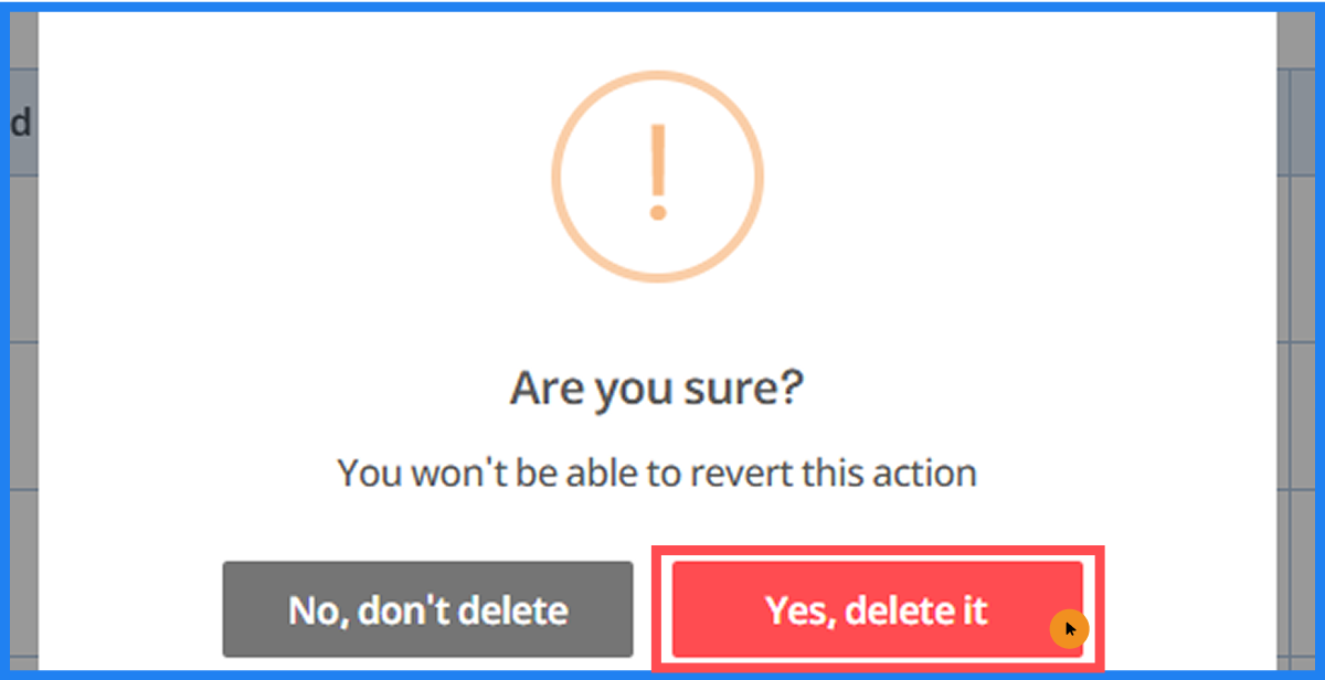 - After clicking the 'Delete' button, a confirmation modal will appear.