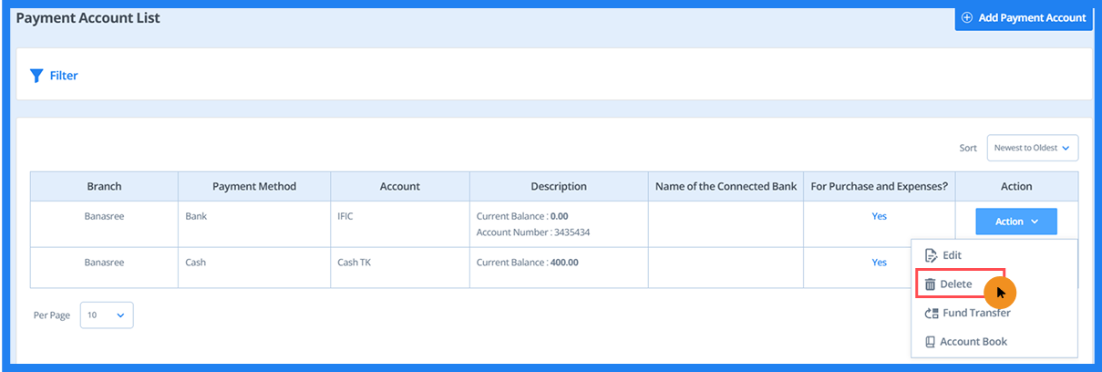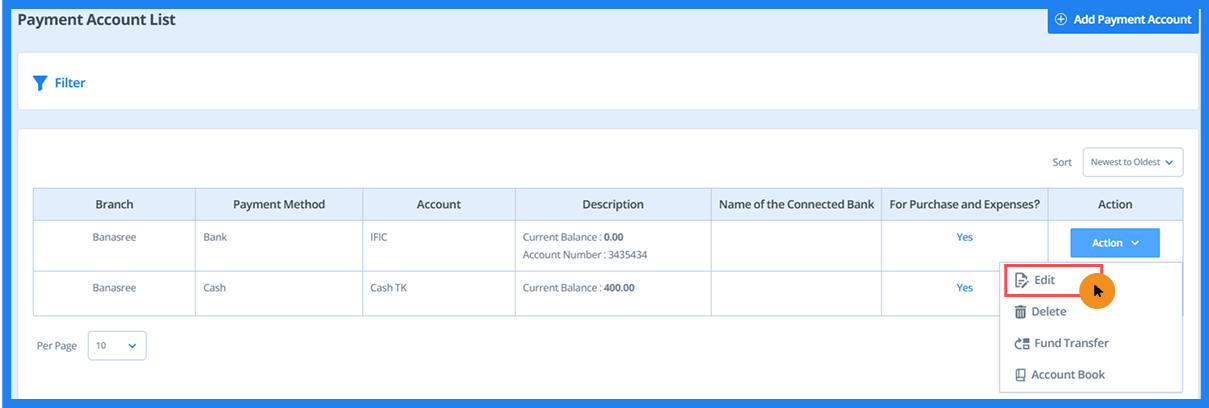 - To access the payment account list from the sidebar, click on "Payment Account List" under Settings.