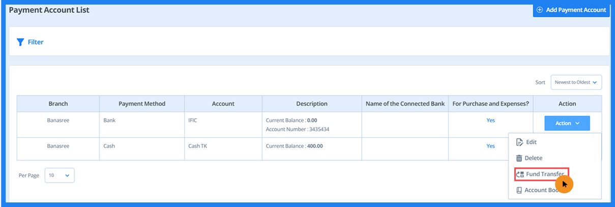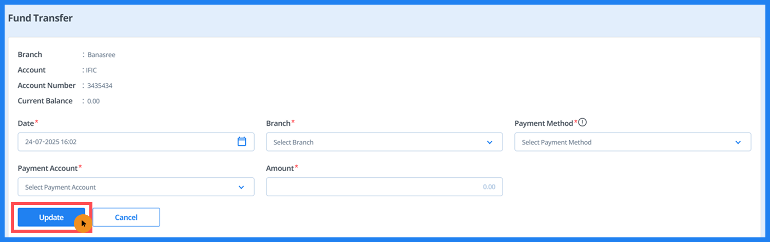 - Fund transfer is applicable only for Cash and Bank accounts.