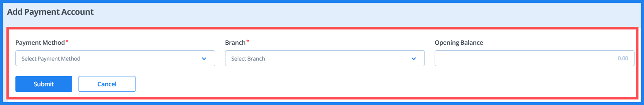- Each payment account is linked to a specific branch, and one branch cannot access another branch's account.