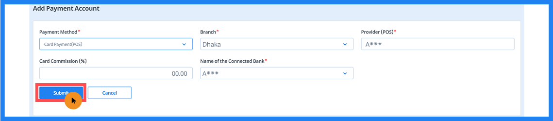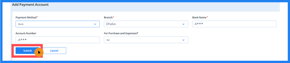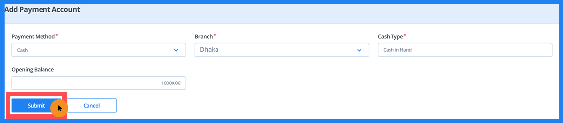 - You can add four types of payment methods: Cash, Bank, Card Payment (POS), and Mobile Banking.
