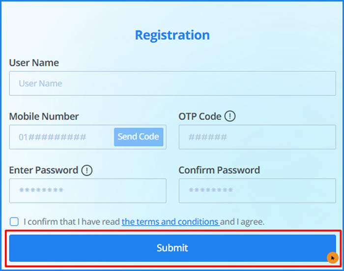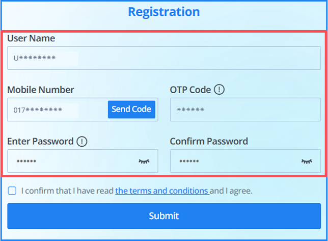 - If the OTP expires, you can click the "Send Code" button beside the mobile number field to request a new OTP.